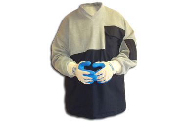 The upper body is manufactured using a specially engineered knitted fabric construction which uses Dupont Kevlar Brand fibres and other materials to give a very high level of cut resistance yet maintaining the light weight and comfort level of this type of work garment. Where the fabric is knitted in a novel sandwich construction which, coupled with the combination of yarns and technical fibres used, gives it exceptional cut and tear resistance levels along with good puncture resistance.
